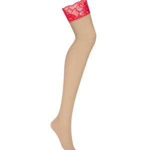 Les bas MatildeaBas nude avec de la dentelle rouge décorative aux cuisses. Fabriqué à partir d?un matériau doux et extensible qui épouse doucement le corps. La dentelle est assortie à d?autres pièces de la collection Matildea, ce qui rend ces bas sensuels pour un look sexy.- sheer nude mesh- dentelle rouge avec un motif complexe- tissus élastiques- les bas ne sont pas autoportants- dentelle : 90% polyamide, 10% élasthanne- mesh : 85% polyamide, 15% élasthanneCe produit ne convient pas aux enfants de moins de 3 ans ? risque d?étouffement en raison des petites pièces qui peuvent être détachées du produit.