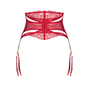 Matildea porte-jarretellesCeinture jarretelle rouge en dentelle et maille transparente. Dotée de baleines verticales qui façonnent visuellement la silhouette et d?un design à lanières saisissant. La fermeture arrière à plusieurs étages permet un ajustement personnalisé. Les jarretelles sont connectées avec des chaînes dorées décoratives pour une finition élégante.- style moderne et design époustouflant- soutenu par des baleines verticales- des chaînes dorées complètent magnifiquement les tissus rouges- fermeture arrière multi-étapes pour une totale adaptabilité- composition : 90% polyamide, 10% élasthanne- produit sans nickel et hypoallergéniqueCe produit ne convient pas aux enfants de moins de 3 ans ? risque d?étouffement en raison des petites pièces qui peuvent être détachées du produit.