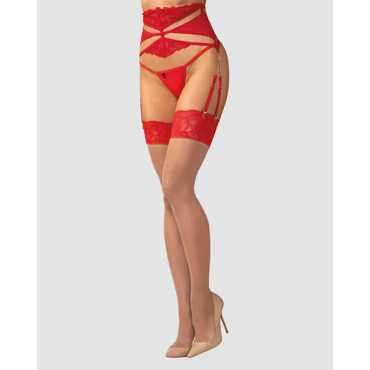 Die MatildeaBas Strümpfe in Nude mit dekorativer roter Spitze an den Oberschenkeln. Hergestellt aus einem weichen und dehnbaren Material, das sich sanft an den Körper anschmiegt. Die Spitze passt zu anderen Teilen der Matildea-Kollektion und macht diese Strümpfe sinnlich für einen sexy Look.- transparente Nude-Mesh- rote Spitze mit komplexem Muster- elastische Stoffe- die Strümpfe sind nicht selbsttragend- Spitze: 90% Polyamid, 10% Elasthan- Mesh: 85% Polyamid, 15% ElasthanDieses Produkt ist nicht für Kinder unter 3 Jahren geeignet – Erstickungsgefahr durch kleine Teile, die sich vom Produkt lösen können.