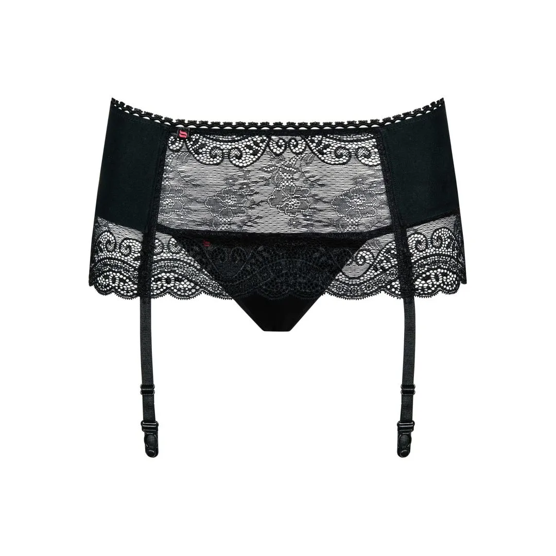 Der Charme dieses schwarzen Strumpfhalters ist unendlich. Eine bemerkenswerte Qualität und eine perfekte Verarbeitung für ein Dessous-Element, das nah am Körper bleibt. Dieser sexy Strumpfhalter ist eine Mischung aus undurchsichtigem Stoff und feiner Spitze, der Hüftbereich ist dehnbar für eine schöne Passform. Die Verschlüsse dieses Obsessive Strumpfhalters sind verstellbar und er besteht aus 85% Polyamid und 15% Elasthan. Mit diesem Strumpfhalter haben Sie das Vergnügen, einen hübschen sexy String zu entdecken. Entdecken Sie die Modelle der wunderschönen Miamor-Kollektion.