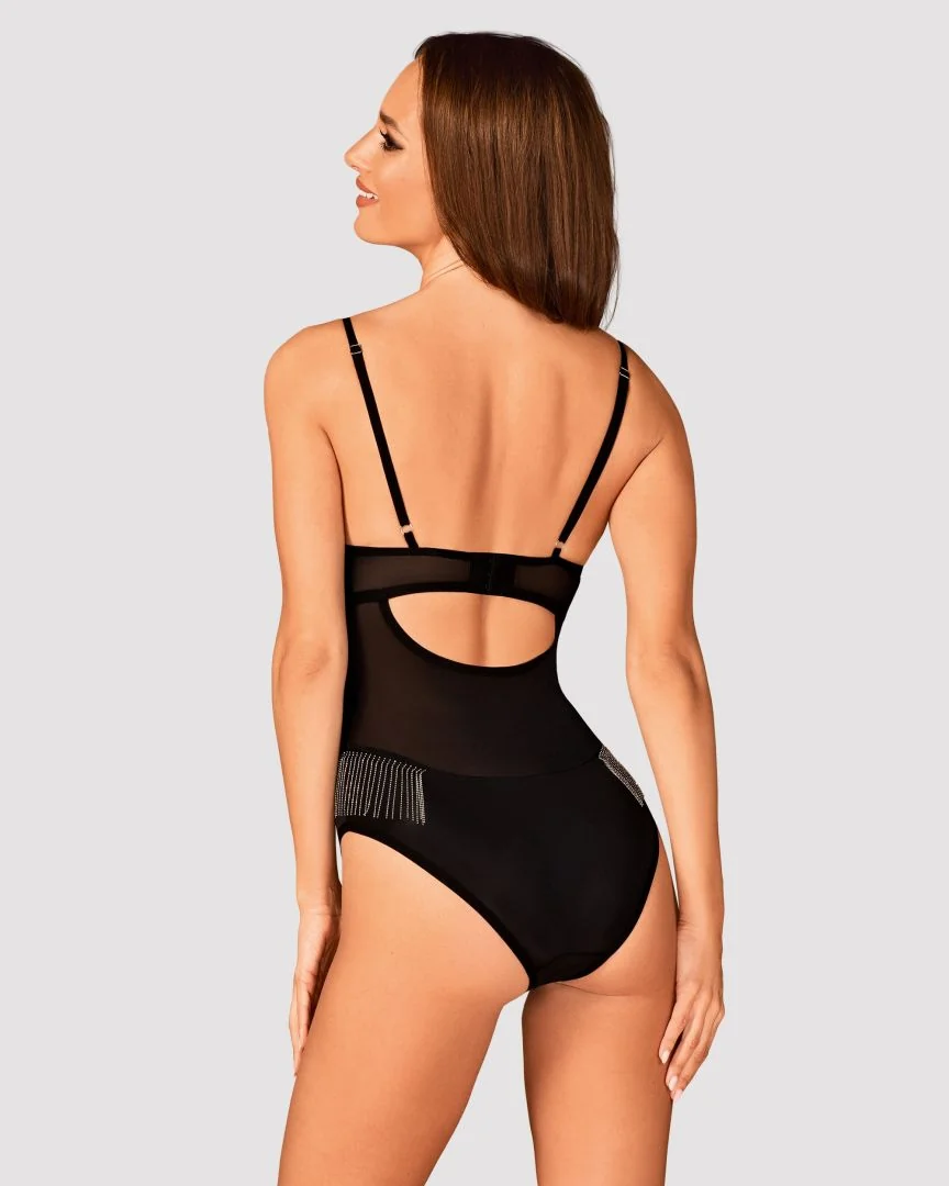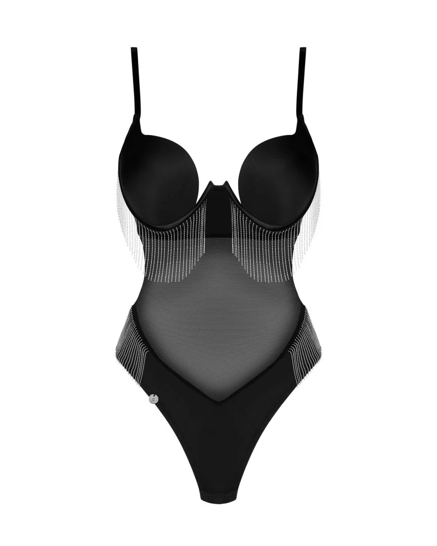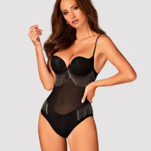 Féminin, séduisant et incroyablement unique, le teddy Milladis est une proposition pour les femmes sûres d’elles et courageuses qui aiment les styles inhabituels de lingerie sensuelle et élégante. La coupe sexy du soutien-gorge expose parfaitement les seins et le décolleté, et l’ajout de rangées de perles délicates et chatoyantes crée un style plein de sex-appeal. Découvrez plus de détails :– Body noir de la collection Milladis- soutien-gorge à armatures – un beau look pour vos seins- bretelles réglables – ajustement parfait- fermeture confortable à l’arrière – pour plus de confort- rangées de perles argentées sous le buste – un ornement accrocheur et intrigant- maille légèrement translucide – enflamme l’imagination- fermeture à l’entrejambe réglable- tissu agréable au toucher et agréable (90% polyamide, 10% élasthanne)