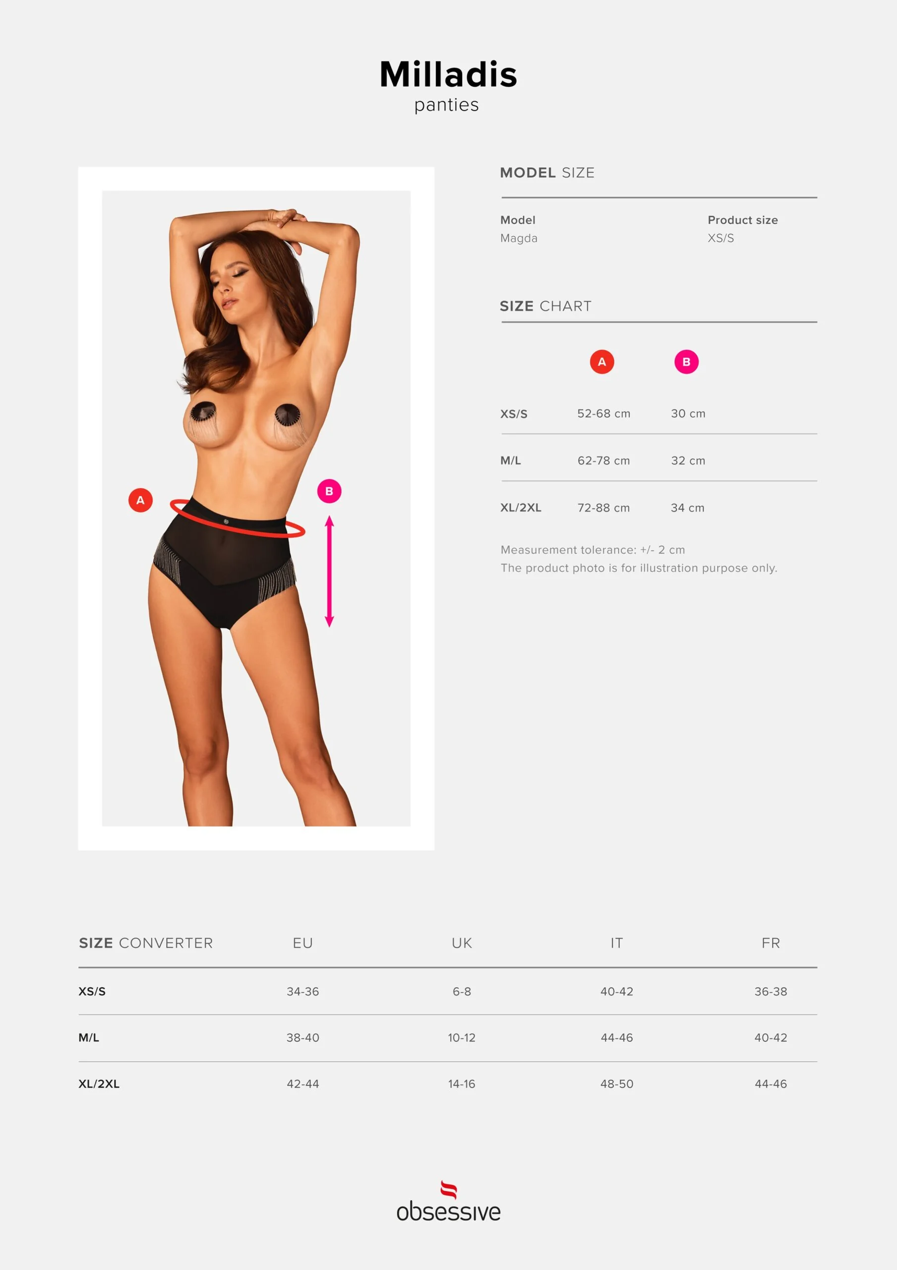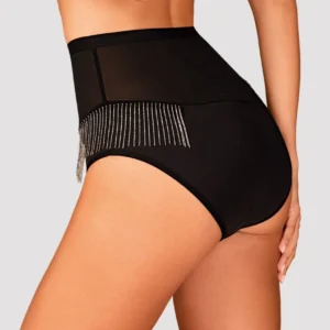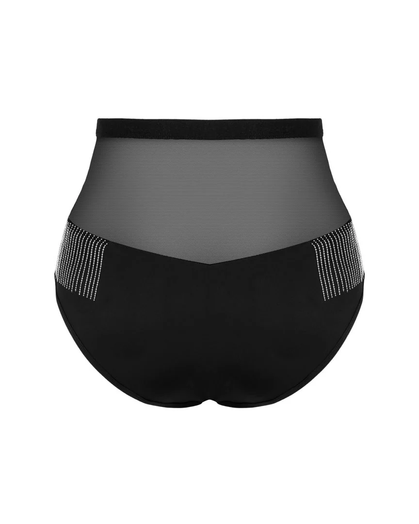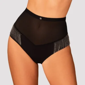Der hoch taillierte Slip aus der Milladis-Kollektion ist ein echtes Juwel in der Welt der Dessous. Ein unglaublich sexy Schnitt und einzigartige Verzierungen betonen perfekt die Kurven und verleihen dem Ganzen Charakter. Dieses Design bildet eine perfekte Kombination mit Handschuhen und Nippelabdeckungen aus derselben Kollektion, und Sie werden sich wie eine echte, kraftvoll sexy Berühmtheit fühlen! Entdecken Sie mehr Details: – Hoch taillierter Milladis-Slip – sexy Netz – enthüllt sanft den Körper und umschmeichelt wunderschön den Bauch – Schmuckanhänger auf der Vorderseite – verleiht Charme – Reihen zarter silberner Perlen an den Seiten der Hüften – ein einzigartiges und faszinierendes Ornament – weiche und angenehme Stoffe (90% Polyamid, 10% Elasthan)