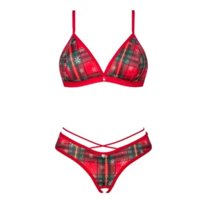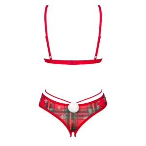 Si vous cherchez une lingerie spéciale avec une touche de Noël, vous venez de la trouver. Dans cet ensemble chaud, vous n?aurez jamais peur des fraîches soirées d?hiver. Il suffit de regarder cette coupe et tous ces détails tentants! Faites bonne impression et préparez-vous pour une célébration inoubliable à deux?Pour en savoir plus :- un ensemble de deux pièces contenant un soutien-gorge et une culotte avec un motif de Noël- le soutien-gorge s?adapte parfaitement grâce aux bretelles réglables- bretelles croisées sexy ? un détail tentant- pendentif en or ? un ajout intéressant- tissu agréable au toucher ? confort garanti Composition : 90 % polyamide, 10 % élasthanne