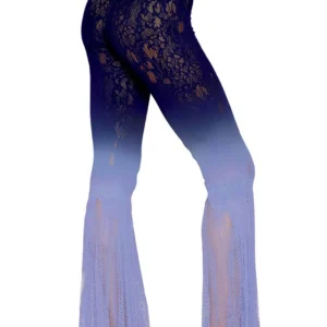 Nahtlose Strumpfhosen, Schnitt und Stil… der 70er Jahre. Netzstrümpfe, Meerjungfrauen-Saum, elastische und weiche Taille. Farbspiel mit zwei Tönen, Ombre-Verlauf, Denim-Blau und violette Hortensie. Strumpfhose, im Stil einer eng anliegenden Hose, im romantischen Stil der wilden 70er Jahre. String und Zubehör nicht enthalten. Zusammensetzung: Flair Leg Strumpfhosen: 90 % Nylon, 10 % Elasthan; Exklusive Dekoration. Pflegehinweis: Separat von Hand in kaltem Wasser waschen, nicht im Trockner trocknen.