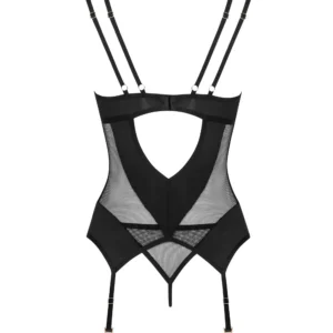Corset et string NesariVoyez par vous-même que les solutions universelles ne doivent pas être ennuyeuses. Regardez ce corset incroyablement bon goût. Sa particularité réside dans une combinaison intéressante de matériaux doux qui envelopperont tendrement votre corps et offriront un confort élevé. Goûtez aux plaisirs sensuels.Pour en savoir plus :- ensemble de sous-vêtements noirs ? corset et string- excellent ajustement grâce aux sangles réglables et à la fixation en plusieurs étapes- l?aspect sensuel du buste sera fourni par des bols avec armature et sangles doubles- combinaison de tissu lisse avec maille transparente ? combinaison originale- pendentif brillant ? attire l??il- porte-jarretelles intégrés ? ajouter chic- agréable au toucher ? prend soin de votre confort(85% polyamide, 15% élasthanne)