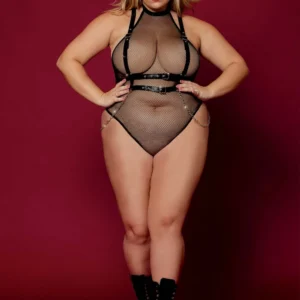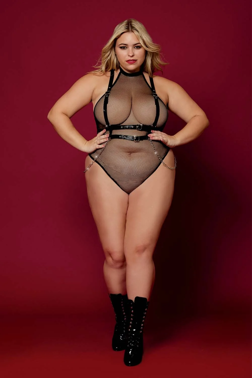 Netz-Body in Übergröße mit Kunstledergeschirr und Ketten – DG13291XBLK