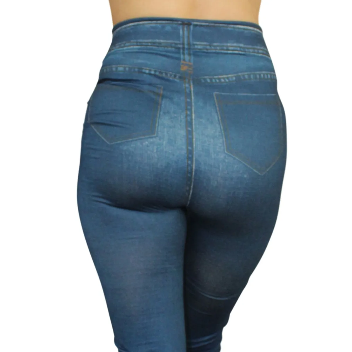 Sehr schöne Leggings, die in allen Jahreszeiten getragen werden können. Diese blaue, enganliegende, dehnbare Leggings mit einem sehr weichen Stoff vermittelt den Eindruck, eine brandneue blaue Jeans zu tragen. Zusammensetzung: 90% Polyester, 10% Elasthan
