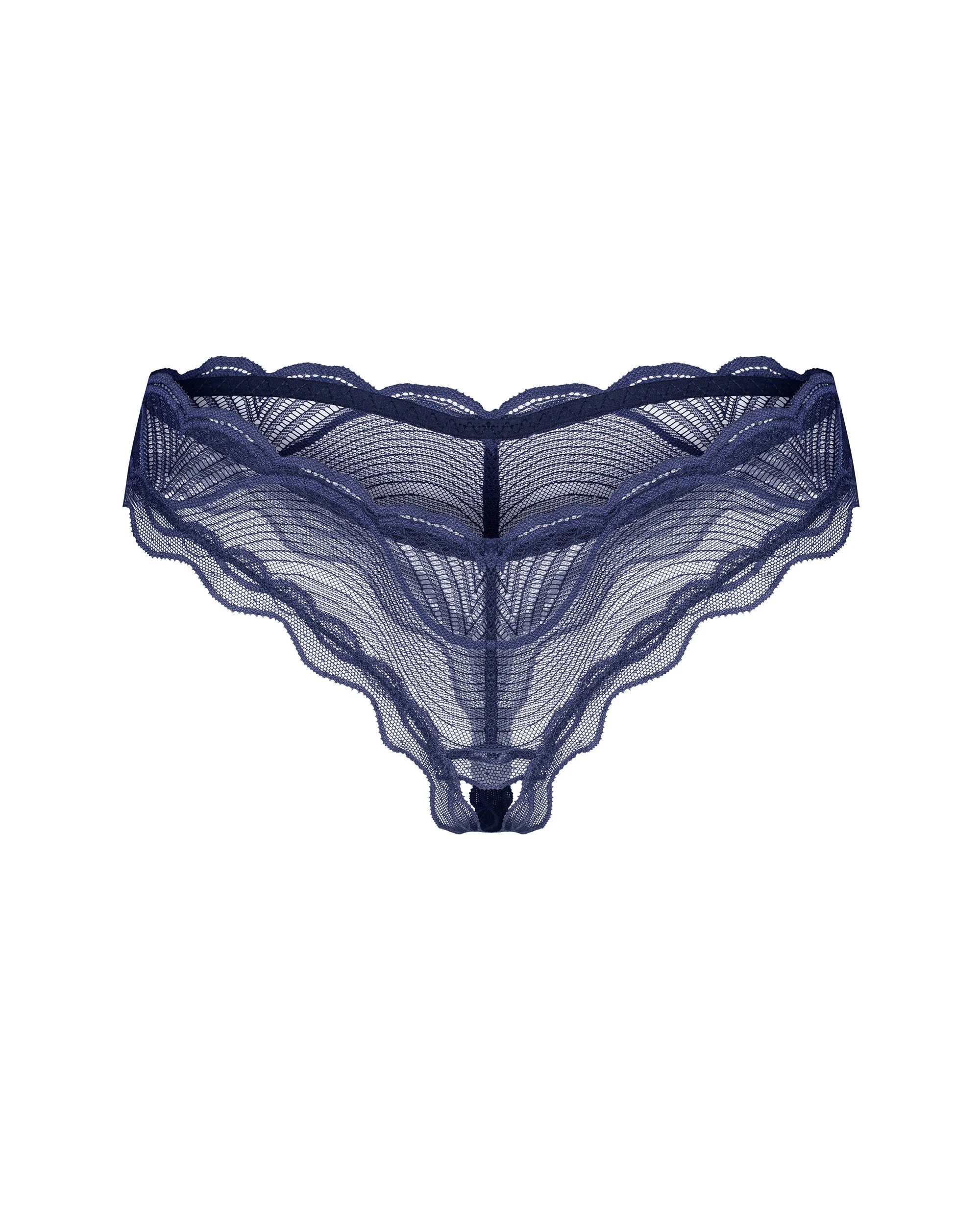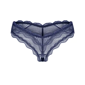 Erweitern Sie Ihre intime Kollektion mit dem Ouvert-String Nightly Blue, wo moderne Eleganz auf kompromisslosen Komfort trifft. In einem fesselnden Marineblau gehalten, besteht dieser String aus einem leichten Stoff, der mit komplexen Mustern verziert ist und eine auffällige Mischung aus Sinnlichkeit und Raffinesse schafft. Die zarten, gewellten Ränder verstärken seinen Charme, während das kühne und offene Design zu einem unwiderstehlichen Touch einlädt.