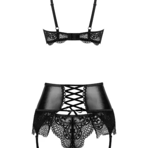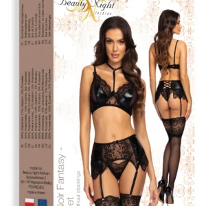 Laissez-vous séduire par la sensualité et l?élégance du set Noir Fantasy, un ensemble de lingerie luxueux qui captive avec son savoir-faire artisanal et ses détails complexes, accentuant parfaitement les courbes féminines. Cet ensemble exceptionnel, fabriqué à partir d?une combinaison de matériau brillant et laqué et de dentelle délicate et exquise, crée une impression inoubliable, vous faisant sentir irrésistiblement attrayant et confiant. Noir Fantasy est le choix parfait pour les femmes qui apprécient la qualité et la sophistication dans la lingerie.Principales caractéristiques de l?ensemble :Soutien-gorge élégant ? une combinaison de tissu mouillé et de dentelle délicate offre un aspect unique et un confort de port, tandis que les bretelles réglables et la sangle décorative autour du cou ajoutent une touche sensuelle.Porte-jarretelles en dentelle ? souligne parfaitement la taille, avec un large laçage à l?arrière pour plus d?élégance et de sensualité.Culotte sexy incluse ? elle complète parfaitement le reste de l?ensemble, en améliorant l?ensemble et en apportant du confort.Laçage sur la ceinture ? non seulement pour un effet esthétique, mais aussi pour permettre de régler la ceinture pour une meilleure tenue, lui donnant ainsi un style élégant et raffiné.L?ensemble Noir Fantasy est emballé dans une boîte élégante avec une belle photo, ce qui en fait un excellent choix de cadeau pour cette personne spéciale. C?est le cadeau idéal pour les hommes qui veulent surprendre leur partenaire avec un geste inoubliable, mettant en valeur son caractère unique et sa beauté.“ Taille : S/M, L/XL et 2XL/3XLTaille S/M : (Poitrine : 81-91 cm, B-C, Taille : 56-71 cm, Hanche : 85-97 cm)Taille L/XL : (Poitrine : 91-107 cm, C-D, Taille : 71-91 cm, Hanche : 97-112 cm)Taille 2XL/3XL : (Poitrine : 107-120 cm, D-E, Taille : 91-104 cm, Hanche : 110-126 cm)Matière : 85% polyamide, 10% élasthanne, 5% polyester