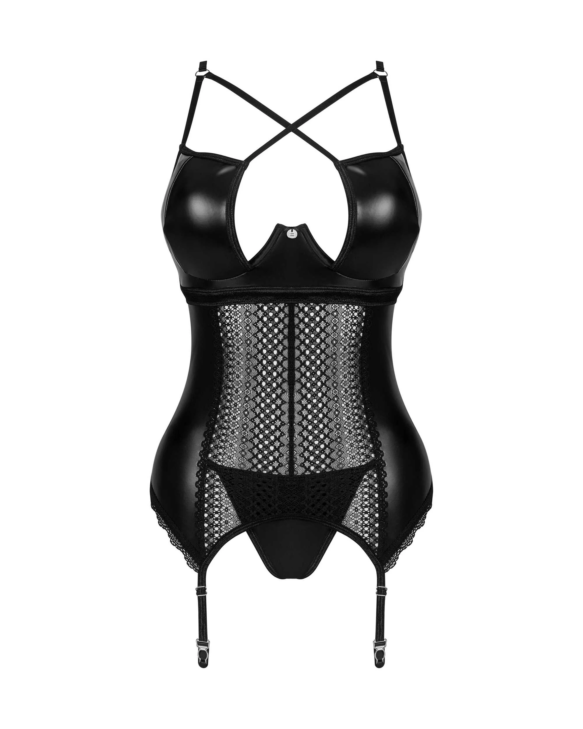 Corset et string Norides Un véritable trésor est en vue ! N?hésitez pas une seule seconde et enflammez votre imagination avec cet ensemble de lingerie stimulant Norides. Devenez un expert en séduction en vous présentant dans ce corset. Des tissus fantastiquement sélectionnés rendront un rendez-vous romantique encore plus agréable et mettront en valeur vos atouts de manière extraordinaire. Découvrez plus de détails:- corset noir et string Norides assorti- l’ajustement parfait est garanti par des bretelles réglables et une fermeture à plusieurs niveaux- coupe unique qui accentue le corps- armatures confortables mettant en valeur la poitrine- pendentif en argent ? attire l’attention- dentelle intrigante et subtile combinée à du latex élastique ? confort et élégance (tissu : 100 % polyuréthane ; tissu : 90 % polyamide, 10 % élasthanne)