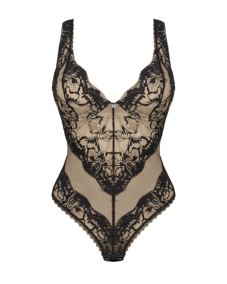 Ce body est tout simplement charmant !Dos joliment décoré, doublure beige à l’avant… tentant avec une dentelle subtile, promettant une soirée romantique pleine de plaisir.Découvrez plus de détails :- Le body Olvidia ? une beauté en dentelle- devant doublé de résille beige- des bonnets à armatures – une belle poitrine- bretelles réglables, fermeture au dos et à l’entrejambe – pour un ajustement parfait- tissu doux pour la peau (90% polyamide, 10% élasthanne)