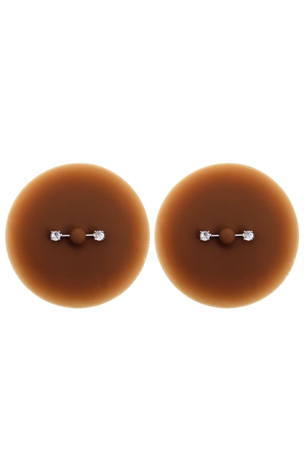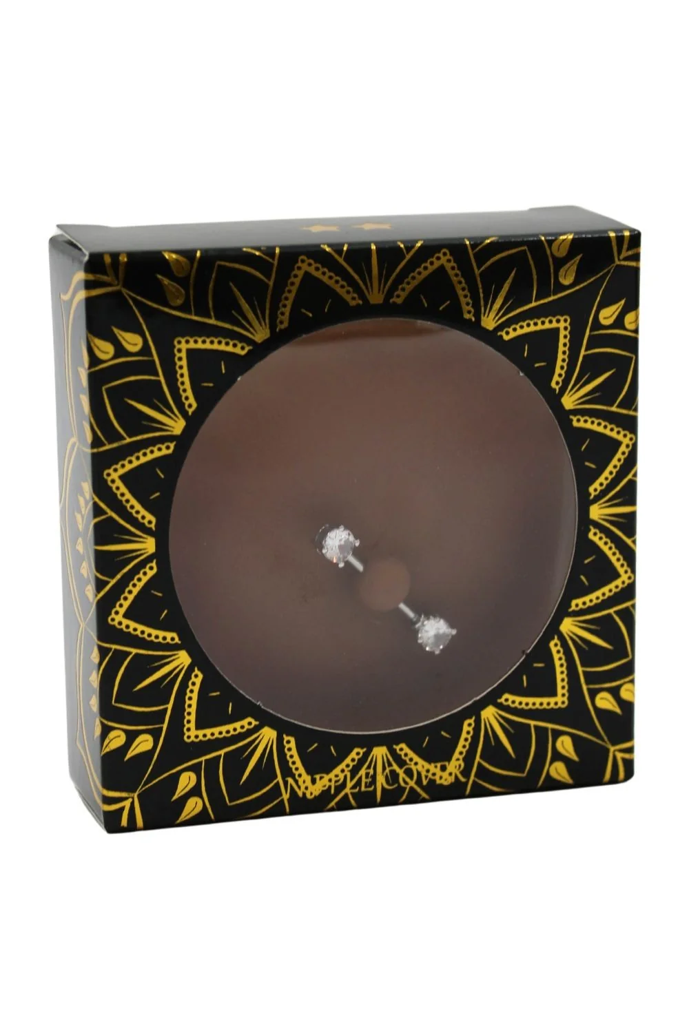 Paar Brustwarzenpiercing-Abdeckungen Stab falscher Diamant dunkle Haut – XP001F