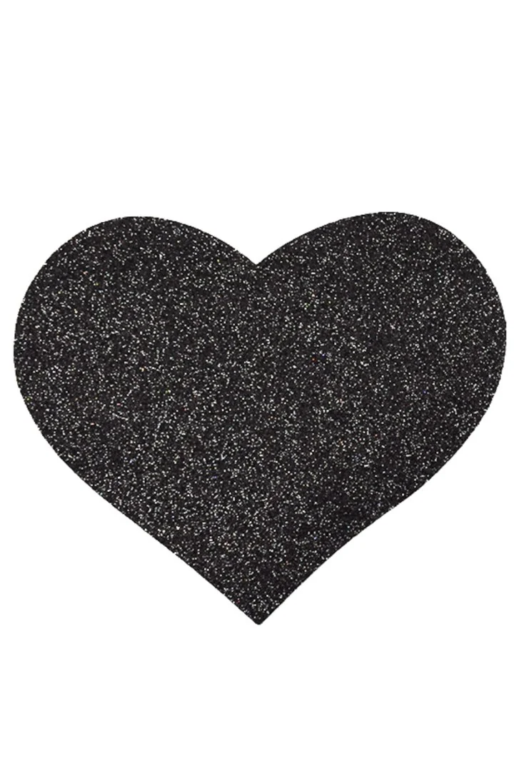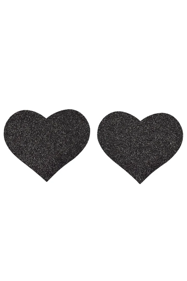 Paar schwarze glitzernde Herz-Nippelabdeckungen – NP-1049BLK