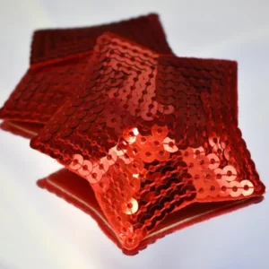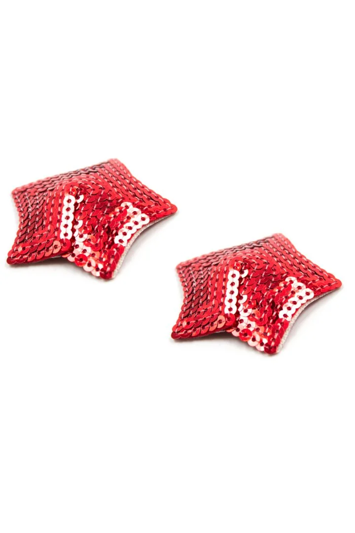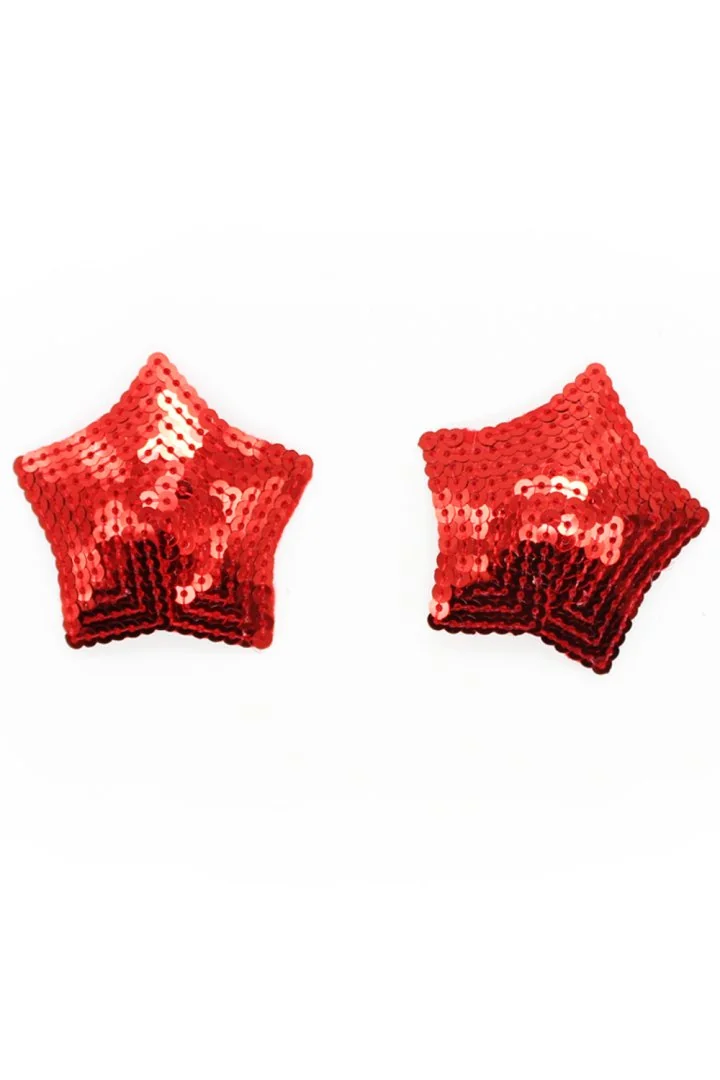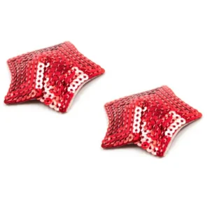 Verleihen Sie Ihrer Brust mit diesen selbstklebenden und wiederverwendbaren Brustwarzenabdeckungen in Sternform, bedeckt mit glänzenden roten Pailletten, einen Hauch von Glamour. Diese glänzenden roten Nippel verleihen Ihnen eine große Portion Charme! Stoff – Pailletten