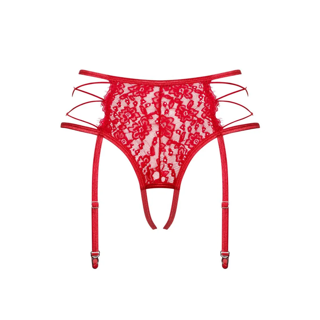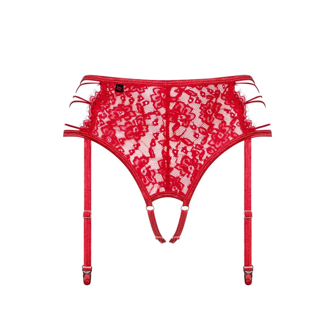 Sind Sie in der Stimmung für gewagtere Erlebnisse? Wir haben den verführerischen und äußerst sinnlichen Strumpfhalter Rediosa kreiert, der Ihnen viel Liebe garantiert. Er ist aus Spitze mit einem phänomenalen Muster gefertigt, das Ganze wird von originellen Details gekrönt. Im Detail: Wunderschöner Strumpfhalter in zeitlosem Rot 2-in-1-Design – Strumpfhalter und String Verstellbare Strumpfhalter – eine Garantie für perfekte Passform Transparente Spitze mit Blumenmuster Locker seitlich verflochtene Träger – betonte Hüften Sexy offener Schritt mit verstellbaren Trägern Der Stoff ist angenehm zu berühren Zusammensetzung: 90% Polyamid, 10% Elasthan