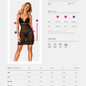 Nuisette ReneliaRencontrez la petite nuisette noire extrêmement féminine et élégante ? la nuisette super sexy de la collection Renelia. Enveloppez-vous d’une matière fine et délicate et voyez à quel point vous avez besoin d’un peu de plaisir ! Autres détails importants : – nuisette Renelia noire – soutien-gorge rembourré – confort et commodité – bretelles et fermeture réglables ? un ajustement parfait – parure bijoux sur le buste ? chic et élégance – la matière translucide enflamme l’imagination – string inclus -matière délicate (94% polyamide, 6% élasthanne)