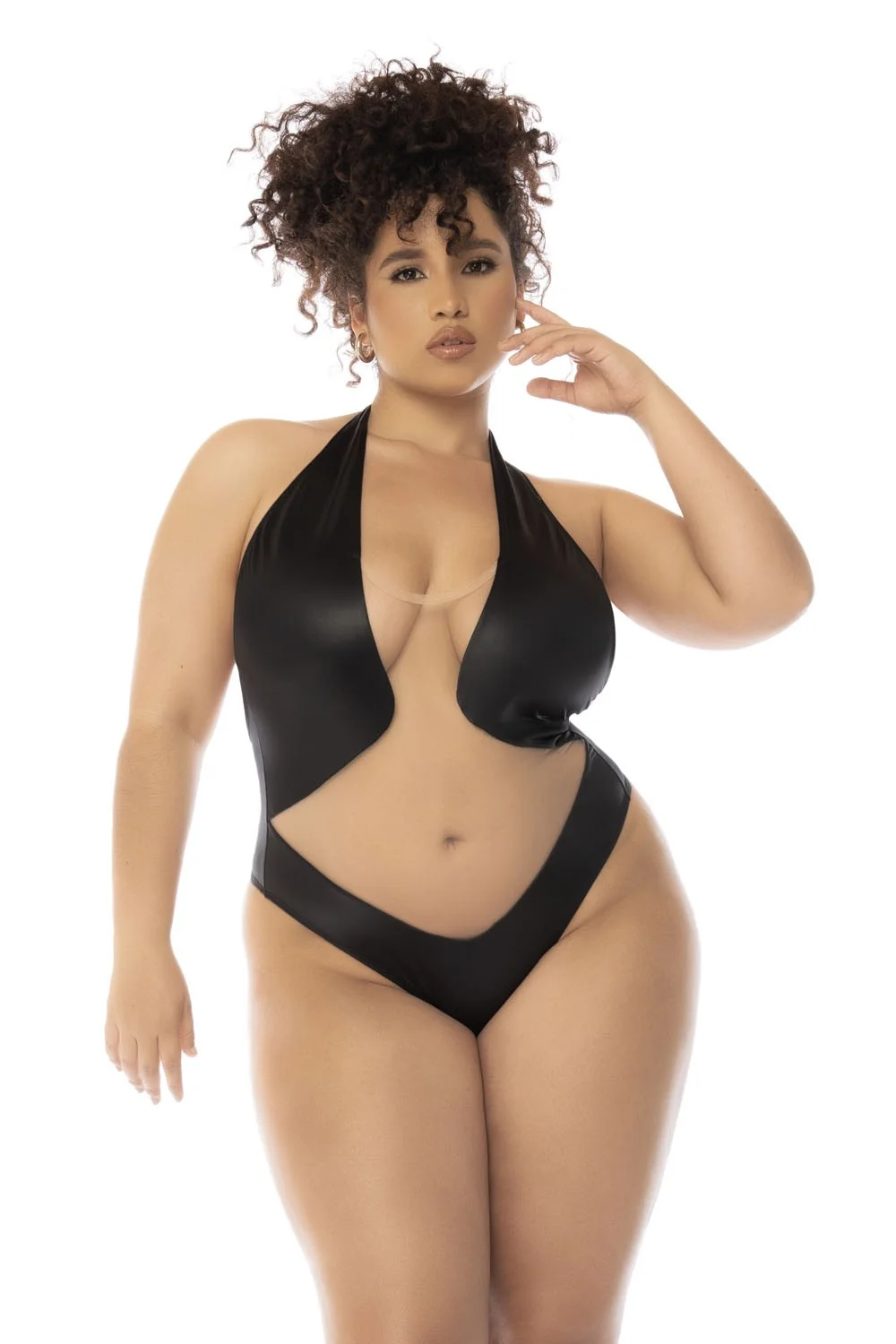 Erleben Sie eine optische Täuschung, die Ihre Silhouette mit diesem atemberaubenden Bodystring verwandelt, sorgfältig gefertigt aus transparentem Netz und Lederimitat-Stoff, aus der Mapalé Lingerie-Kollektion. Dieser Body in Übergröße verfügt über einen Neckholder-Kragen und einen verstellbaren Verschluss im Schritt. Zusammensetzung: 93% Polyester 7% Elasthan / 100% Polyamid – Pflegehinweis: Handwäsche, kein Bleichmittel verwenden, nicht bügeln