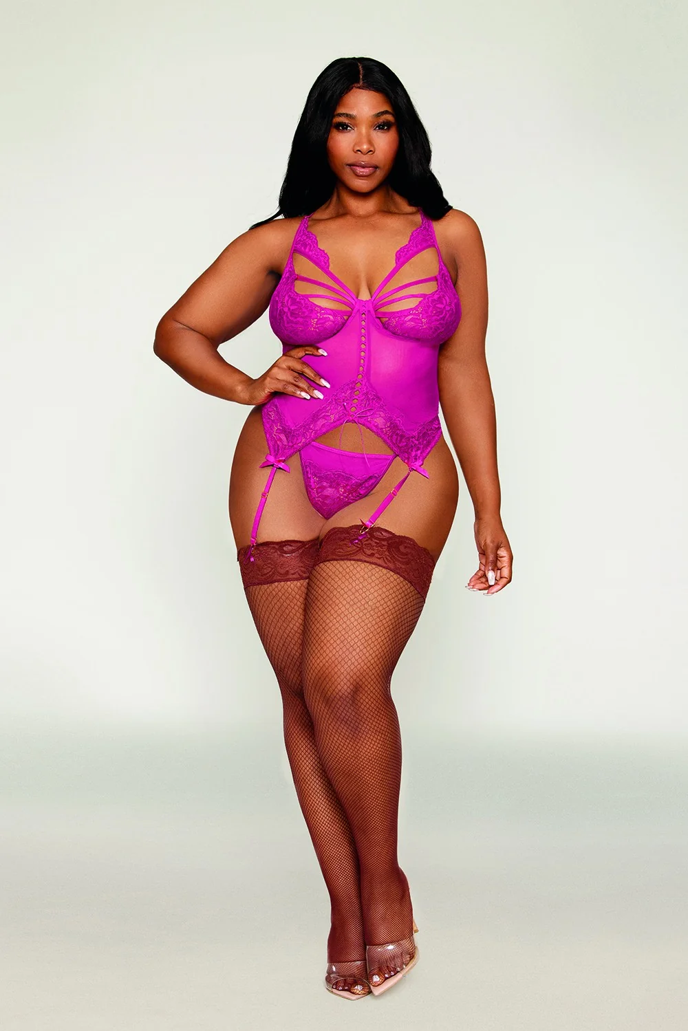 Rosa Übergrößen-Bustier mit Strumpfhalter und String – DG13283XBEE