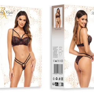 Ensemble charmant et sexy qui combine les caractéristiques du design classique et moderne. Le soutien-gorge, attaché avec des crochets, a des bretelles réglables et des bretelles complexes au-dessus du buste.La culotte, dans une coupe moderne, a également des caractéristiques réglables. L?ensemble est fait de belle dentelle noire avec des fleurs rouges brillantes.Taille : S/M et L/XLTaille S/M : (Seins : 81-91 cm, B-C, Taille : 56-71 cm, Hanche : 85-97 cm)Taille L/XL : (Seins : 91-107 cm, C-D, Taille : 71-91 cm, Hanche : 97-112 cm)Matière : 90% polyamide, 10% élasthanne