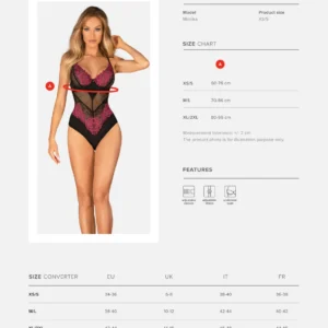 Body RosentyLa lingerie expressive fait briller vos yeux ? La nuisette Rosenty vous offrira le pouvoir des sensations esthétiques. Le secret de cette lingerie réside dans sa conception minutieuse. Laissez-vous séduire par la coupe classique et les tissus sélectionnés de manière phénoménale qui accentueront vos charmes.Plus de détails :- teddy noir inky- ajustement parfait grâce à l’armature, aux bretelles réglables, à la fermeture en plusieurs étapes dans le dos et à l’entrejambe- inserts intrigants à motif floral- pendentif élégant qui attire l’attention- matières souples sélectionnées avec soin Composition : 90 % polyamide, 10 % élasthanne