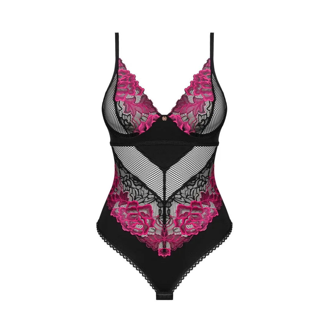 Body RosentyDie ausdrucksstarke Dessous lassen Ihre Augen erstrahlen? Das Negligé Rosenty wird Ihnen die Macht der ästhetischen Empfindungen verleihen. Das Geheimnis dieser Dessous liegt in ihrer sorgfältigen Gestaltung. Lassen Sie sich von dem klassischen Schnitt und den phänomenal ausgewählten Stoffen verführen, die Ihre Reize betonen.Mehr Details:- schwarzer inky Teddy- perfekte Passform dank Bügel, verstellbaren Trägern, mehrstufigem Verschluss am Rücken und im Schritt- faszinierende Einsätze mit Blumenmuster- eleganter Anhänger, der die Aufmerksamkeit auf sich zieht- sorgfältig ausgewählte, weiche Materialien Zusammensetzung: 90 % Polyamid, 10 % Elasthan