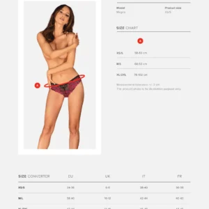 Suchen Sie nach außergewöhnlicher Lingerie, um Ihre Sinne zu entfachen? Etwas so Magnetisches, dass niemand den Blick von Ihnen abwenden kann? Hier ist sie zu Ihrem größten Vergnügen! Der klassische String Rosenty mit einem hohen Beinausschnitt auf den Gesäßbacken wird Ihre Weiblichkeit perfekt zur Geltung bringen. Ein fantasievolles Muster mit Rosen wird Ihre Hüften verführerisch umhüllen und Sie fühlen sich… in jeder Hinsicht erfüllt.
