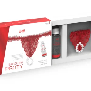 rote Brazilian Tanga feine Spitze transparenter Perlenring einzigartig sinnlich stimulierend wasserbasiertes Gleitgel Erdbeer Geschmack zart verführerisch
