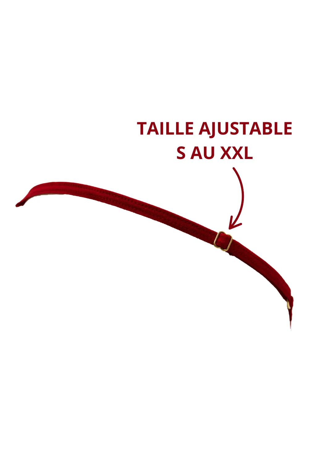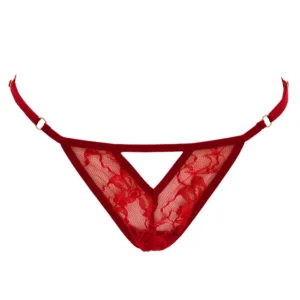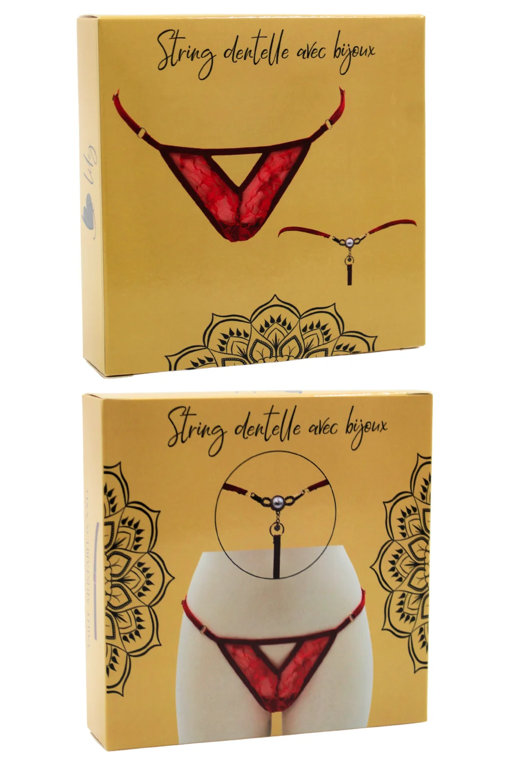 Eleganz und Sinnlichkeit treffen auf diesen roten String aus durchbrochener Spitze, veredelt durch ein zentrales Perlenjuwel, das hinten von goldenen Strasssteinen umgeben ist. Seine feinen und verstellbaren Bänder, verziert mit goldenen Ringen, garantieren eine optimale Passform und betonen die Kurven mit Finesse. Produktdetails: ✔ Feine und durchbrochene Spitze, die Sinnlichkeit und Raffinesse vereint. ✔ Perlenjuwel mit goldenen Strasssteinen hinten, für einen kostbaren und anspruchsvollen Touch. ✔ Verstellbare Bänder mit goldenen Ringen, die perfekten Komfort gewährleisten. Einheitsgröße verstellbar von S bis XXL. Pflegehinweise: Waschen Sie es von Hand in lauwarmem Wasser mit einer milden Seife, um die Spitze zu erhalten und das Juwel nicht zu beschädigen. Bei Maschinenwäsche verwenden Sie ein Wäschenetz und einen Schonwaschgang bei niedriger Temperatur. Vermeiden Sie den Trockner, bevorzugen Sie das Lufttrocknen auf einer flachen Oberfläche, um Form und Elastizität zu bewahren. Material: 100% Polyamid