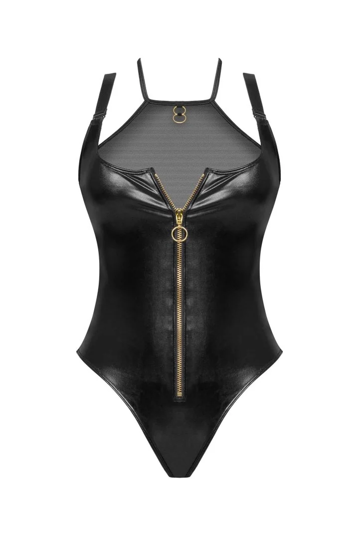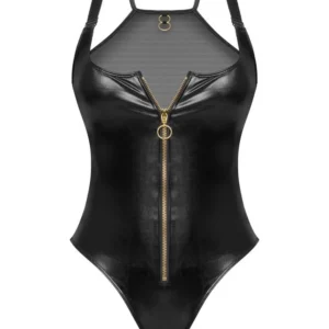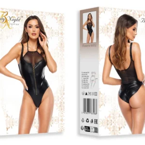 Le body „Roxana“ combine du tulle et des matières de type latex pour un look sensuel et une coupe parfaite. Grâce à la fermeture crochetée à l?entrejambe, le body peut également être porté comme top pour les tenues de fête. Les accents dorés sous forme de fermeture éclair et d?anneaux au cou ajoutent élégance et luxe. Un choix idéal pour les sorties en soirée et les rencontres romantiques.L?ensemble est livré dans un élégant emballage avec une photo représentant le produit.Taille : S/M et L/XLTaille S/M : (Poitrine : 81-91 cm, B-C, Taille : 56-71 cm, Hanche : 85-97 cm)Taille L/XL : (Poitrine : 91-107 cm, C-D, Taille : 71-91 cm, Hanche : 97-112 cm)Matière : 88 % polyester, 12 % élasthanne