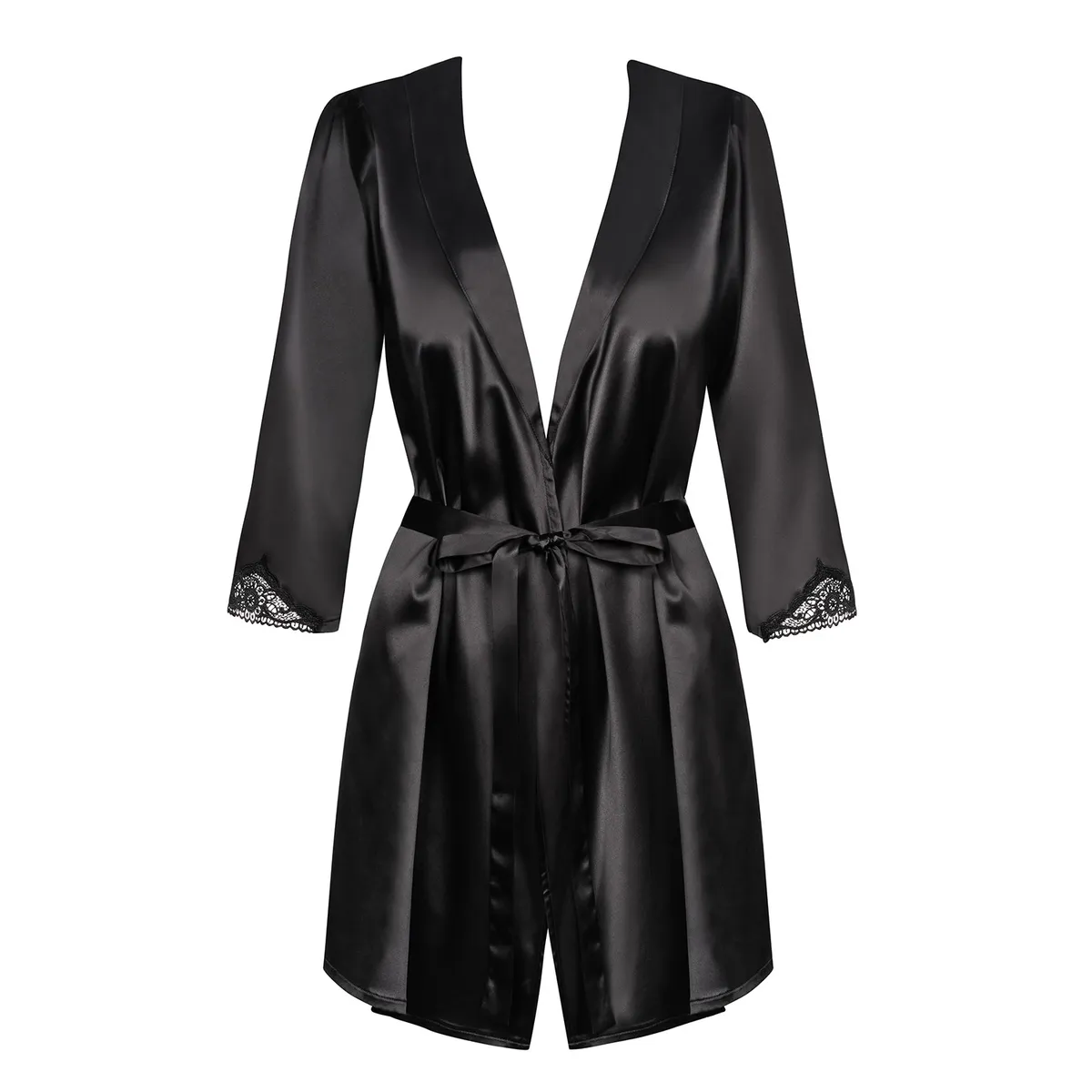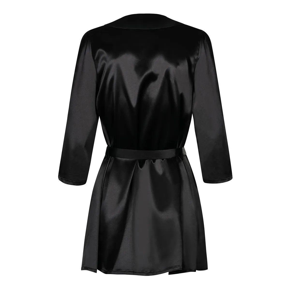 Wunderschöner schwarzer Satin-Bademantel mit sehr angenehmer Dicke, da er gefüttert ist. Dieser schwarze Satin-Bademantel aus der Satinia Obsessive Kollektion wird mit einem passenden String geliefert. Sein Satin-Gürtel ermöglicht es Ihnen, ihn zu schließen … oder nicht, und Sie werden Freude daran haben, ihn mit dem Nachthemd und/oder der Maske derselben Kollektion zu kombinieren. Sie werden den kleinen Hauch von schwarzer Spitze an den Ärmeln bemerken. Dieser schwarze Bademantel besteht aus 95% Polyamid und 5% Elasthan. Sehen Sie diesen Bademantel in Grau. Sehen Sie diesen Bademantel in Rosa. Entdecken Sie die gesamte Satinia Obsessive Kollektion.