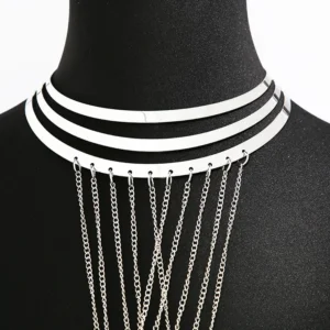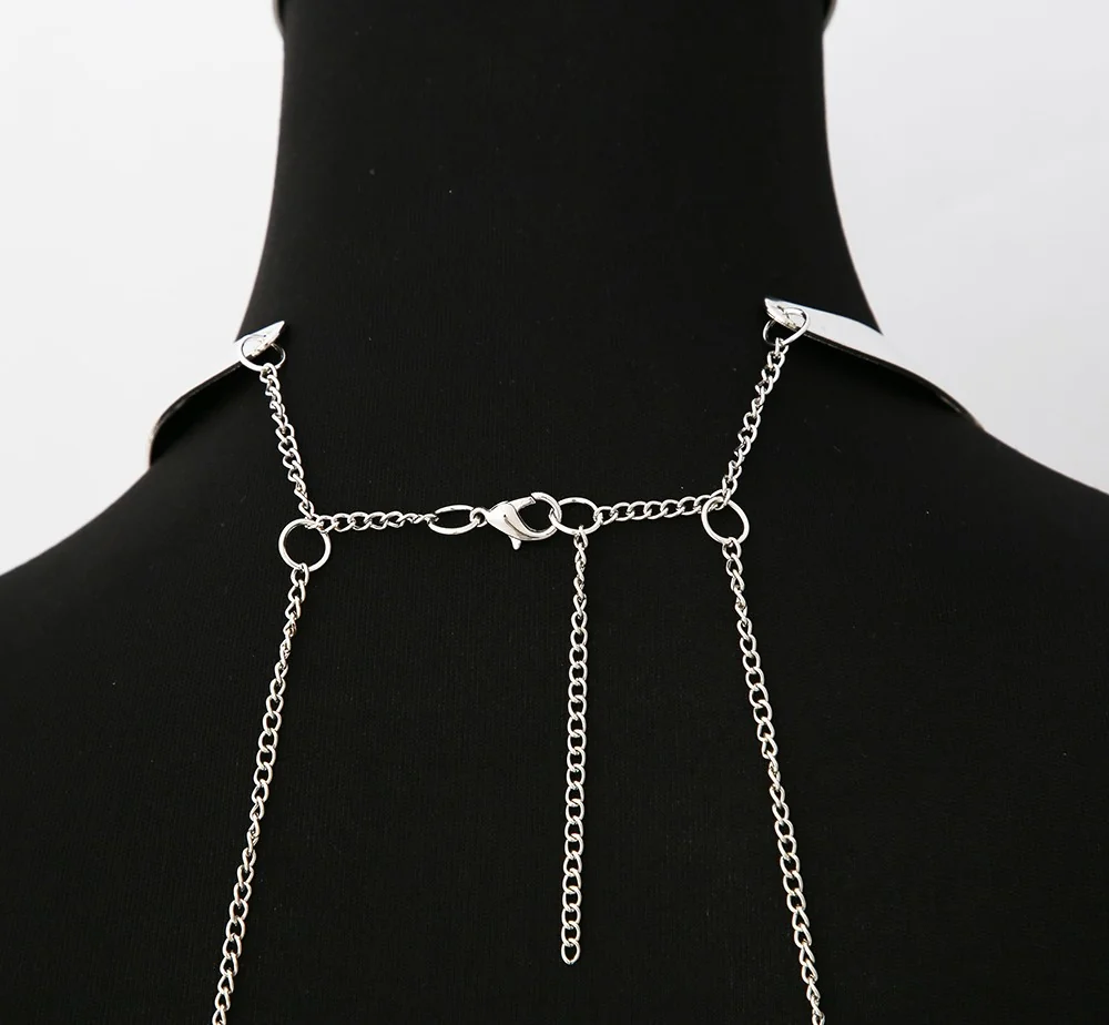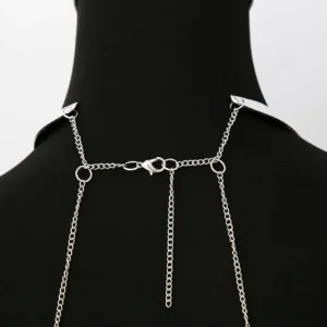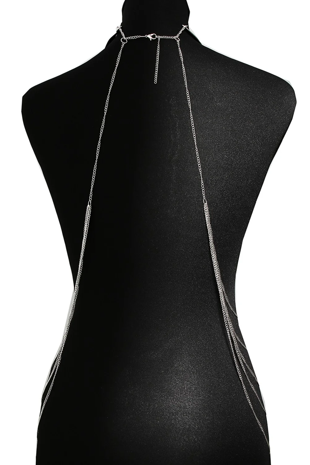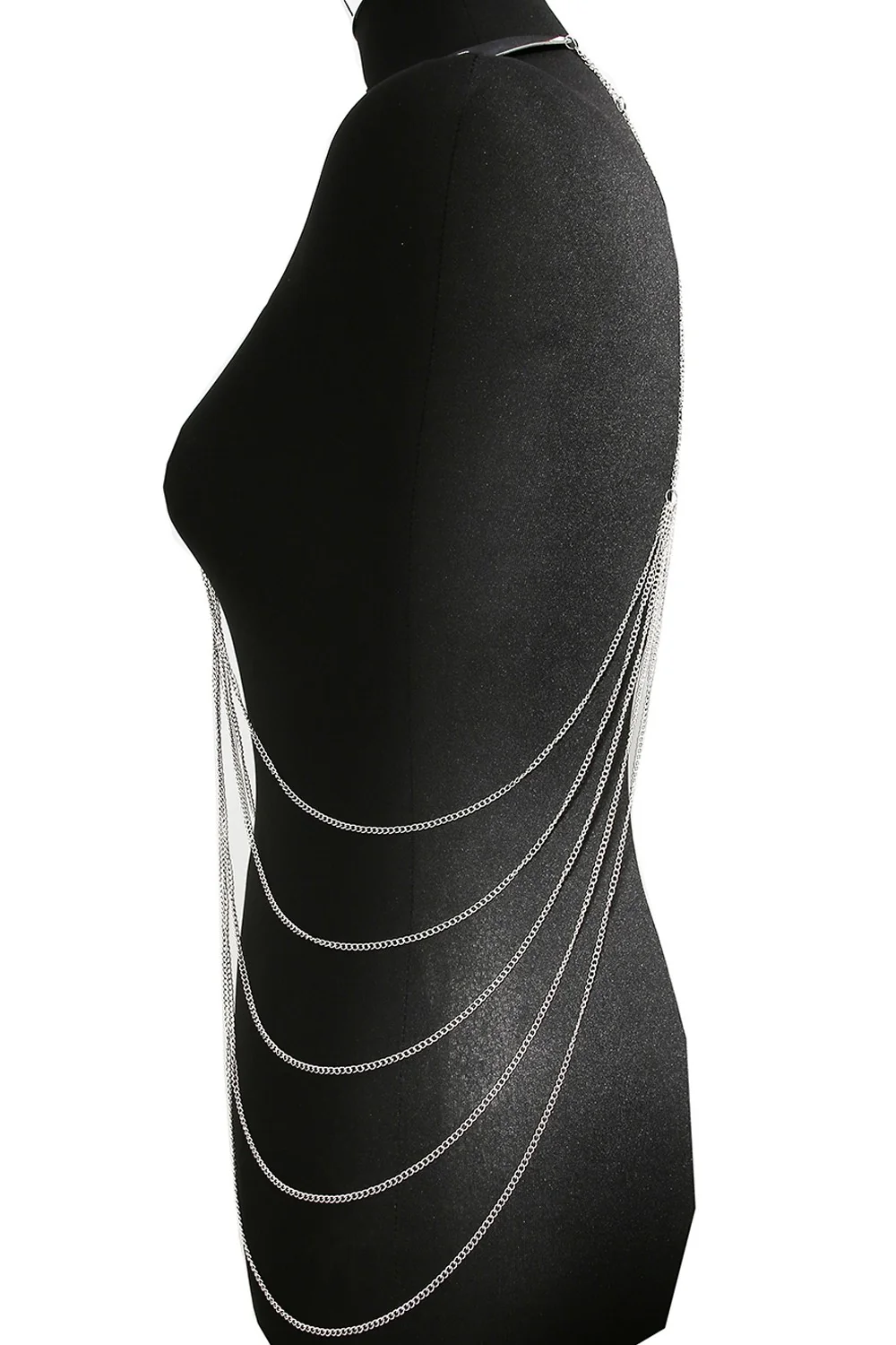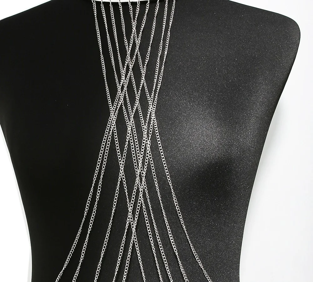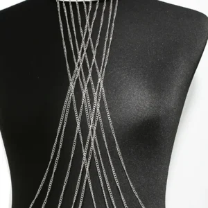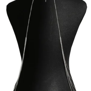 Verleihen Sie Ihrem Körper mit dieser wunderschönen silberfarbenen Körperkette mit breitem silberfarbenem Hals und drei Ringen einen Hauch von Eleganz. Dieses Körper-Schmuckstück kann über einem Kleid oder einem schwarzen Top getragen werden, um das Gesamtbild zu veredeln, oder einfach auf Ihrem nackten Körper. Die Marke BE LILY Accessoires wird Ihre Silhouette betonen. Verschluss im Nacken – Feine silberfarbene Kette. Zusammensetzung: 100 % Metall mit silberfarbener Beschichtung.