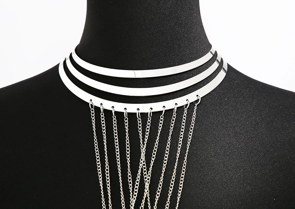 Schmuck Halskette mit drei Ringen und silbernen Körperketten – BCHA0012SIL