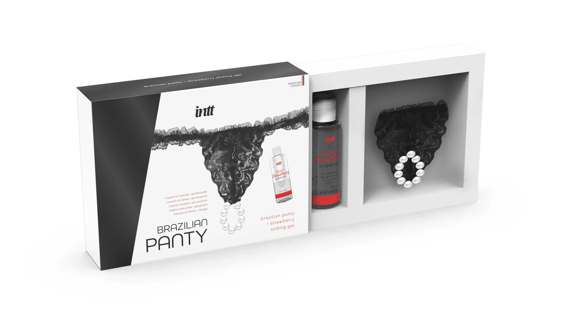 schwarz brasilianischer Tanga feine Spitze Perlenring einzigartig erotisch stimulierend sinnlich transparent elastisch verführerisch zierlich Gleitgel wasserbasiertes Erdbeergeschmack sanft geschmeidig