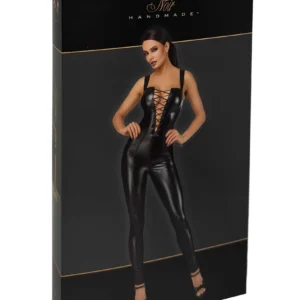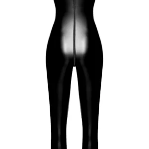 Une combinaison entièrement faite de tissu noir power wetlook avec de larges bretelles douces. Elle dispose d?une profonde encolure à lacets pour un ajustement personnalisable. Une fermeture à glissière bidirectionnelle allant de l?entrejambe jusqu?au haut du dos ajoute un bord audacieux, permettant un accès sans effort et la liberté de révéler exactement ce que vous voulez, quand vous le souhaitez.Matière : 76% polyester, 24% elasthan, Polimer coating