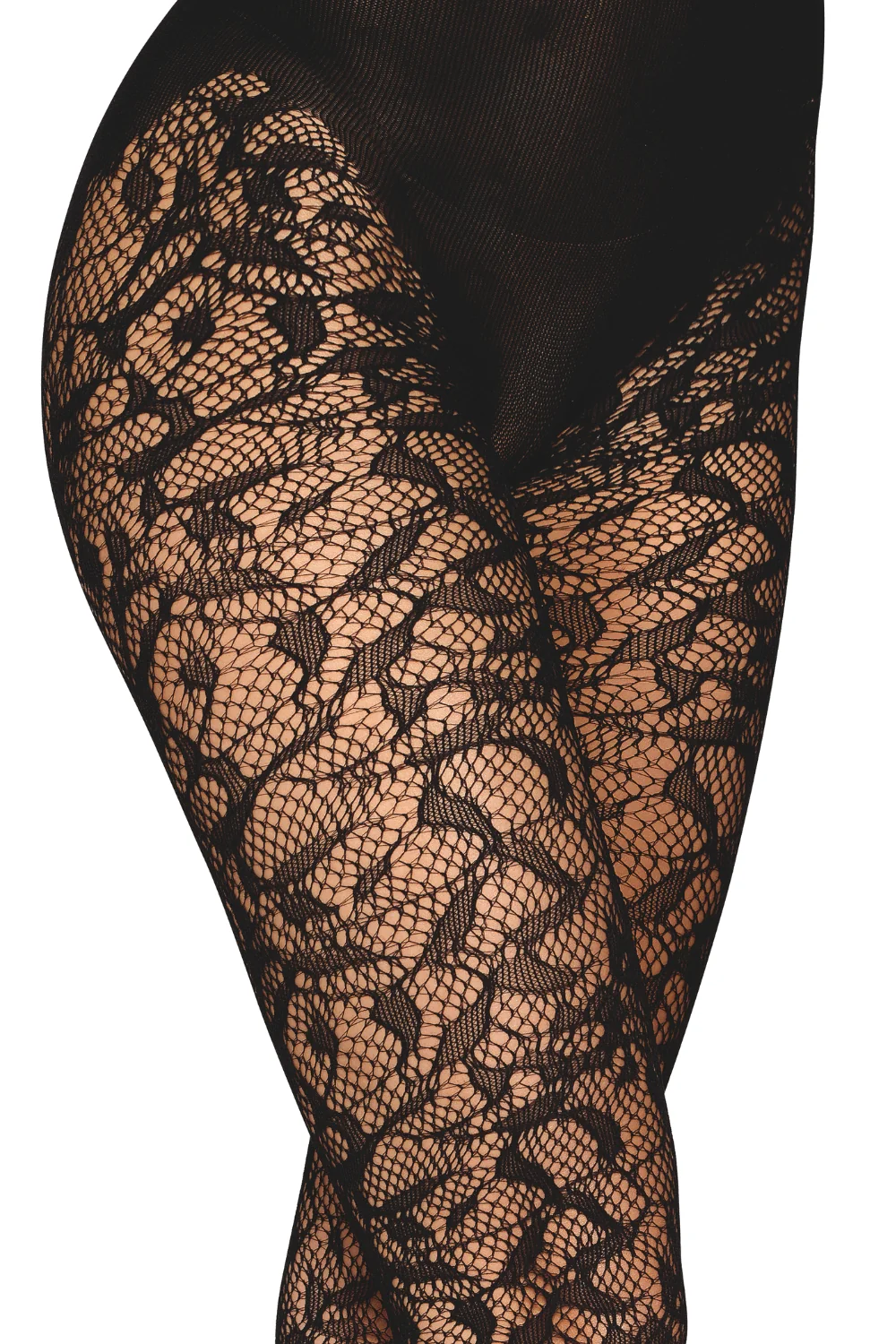 Schwarze Fantasie-Strumpfhose mit Höschen-Druck – DG0529BLK