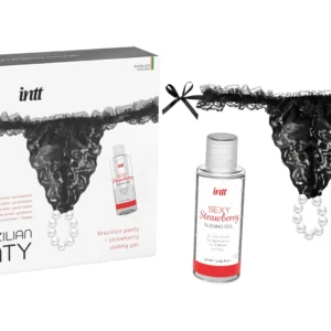 schwarze feine Spitzenwäsche Perlenring einzigartiger erotischer Tanga brasilianischer verführerischer Akzent sinnliche Intimstimulation wasserbasiertes Erdbeergleitgel aromatisches Reisegröße diskrete Verpackung