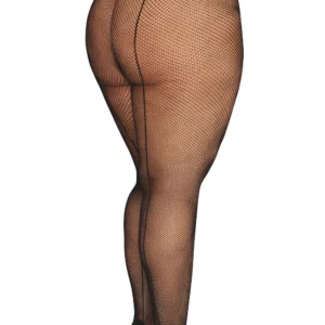 Schwarze Netz-Strumpfhose in Übergröße mit Zierstreifen hinten – DG0528XBLK