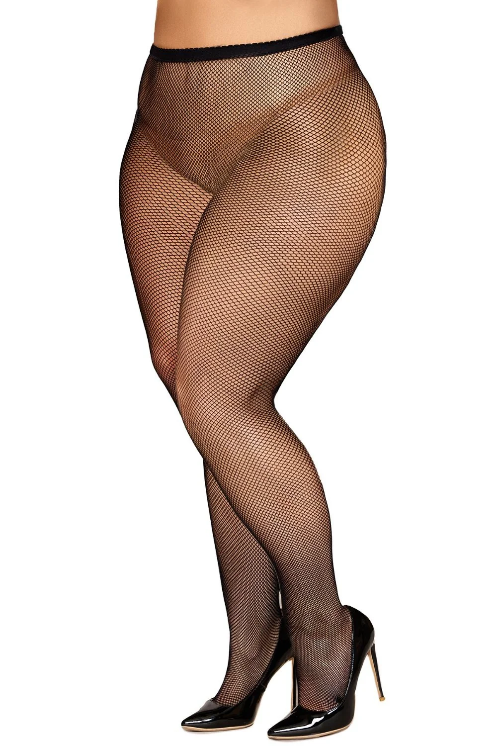 Schwarze Netzstrumpfhose in Übergröße mit feinem Netz – DG0542XBLK