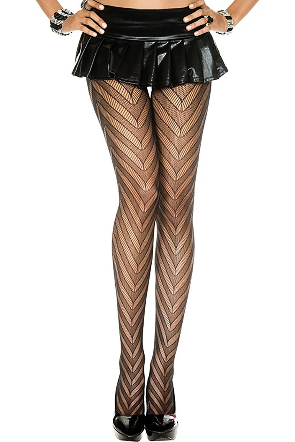 Schwarze Netzstrumpfhose mit Zickzack-Design – MH5099BLK