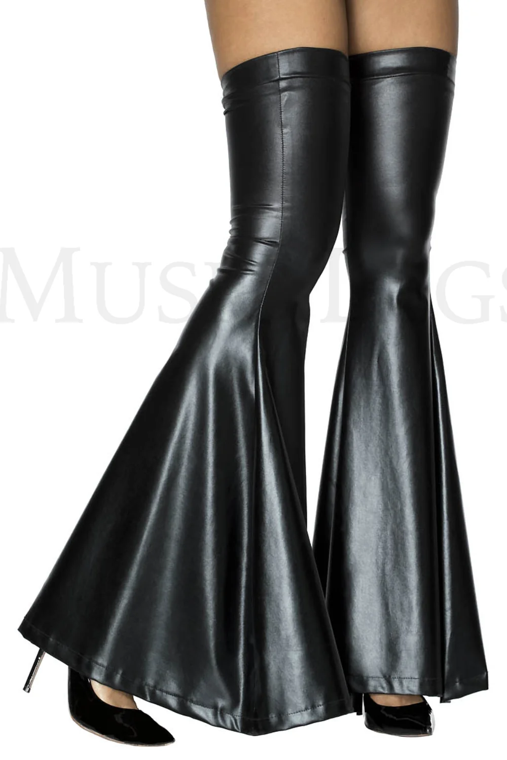 Schwarze Schlaghosenstrümpfe aus Wet-Look-Stoff – MH4878BLK