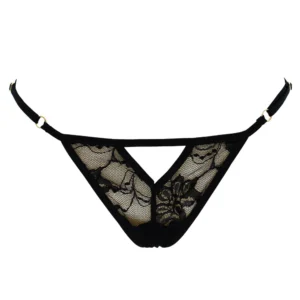 Eleganz und Sinnlichkeit treffen aufeinander mit diesem schwarzen String aus durchbrochener Spitze, veredelt durch ein zentrales Perlen-Schmuckstück, umgeben von goldenen Strasssteinen auf der Rückseite. Seine feinen und verstellbaren Bänder, verziert mit goldenen Ringen, garantieren eine optimale Passform und betonen die Kurven mit Finesse. Produktdetails: ✔ Zarte und durchbrochene Spitze, die Sinnlichkeit und Raffinesse vereint. ✔ Perlen-Schmuckstück mit goldenen Strasssteinen auf der Rückseite, für einen kostbaren und anspruchsvollen Touch. ✔ Verstellbare Bänder mit goldenen Ringen, die perfekten Komfort gewährleisten. Einheitsgröße verstellbar von S bis XXL Pflegehinweise: Von Hand in lauwarmem Wasser mit mildem Seifenmittel waschen, um die Spitze zu schonen und das Schmuckstück nicht zu beschädigen. Bei Maschinenwäsche ein Wäschenetz und einen Schonwaschgang bei niedriger Temperatur verwenden. Vermeiden Sie den Trockner, bevorzugen Sie das Lufttrocknen auf einer flachen Oberfläche, um Form und Elastizität zu erhalten. Material: 100% Polyamid
