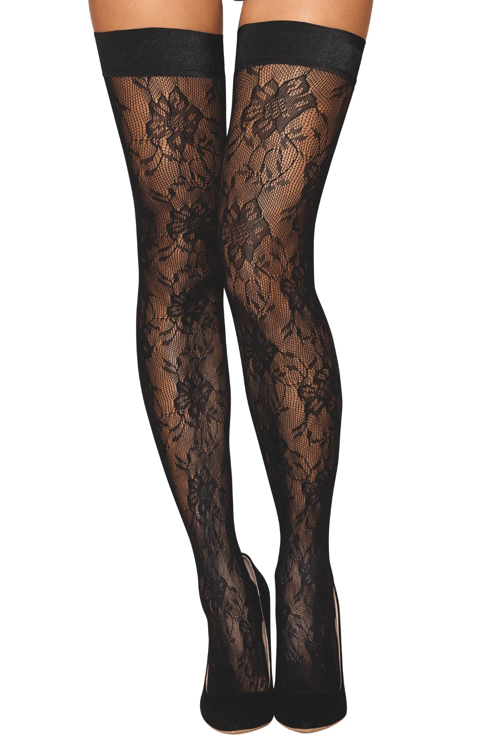 Schwarze selbsthaltende Strümpfe mit Fantasiemuster – DG0543BLK