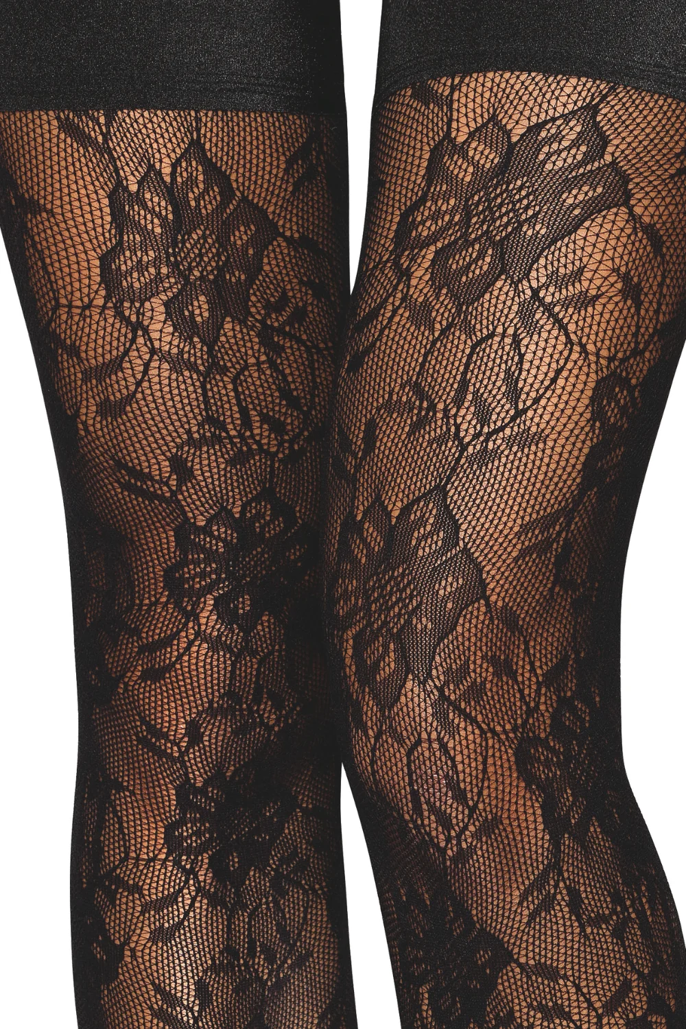 Schwarze selbsthaltende Strümpfe mit Fantasiemuster – DG0543BLK