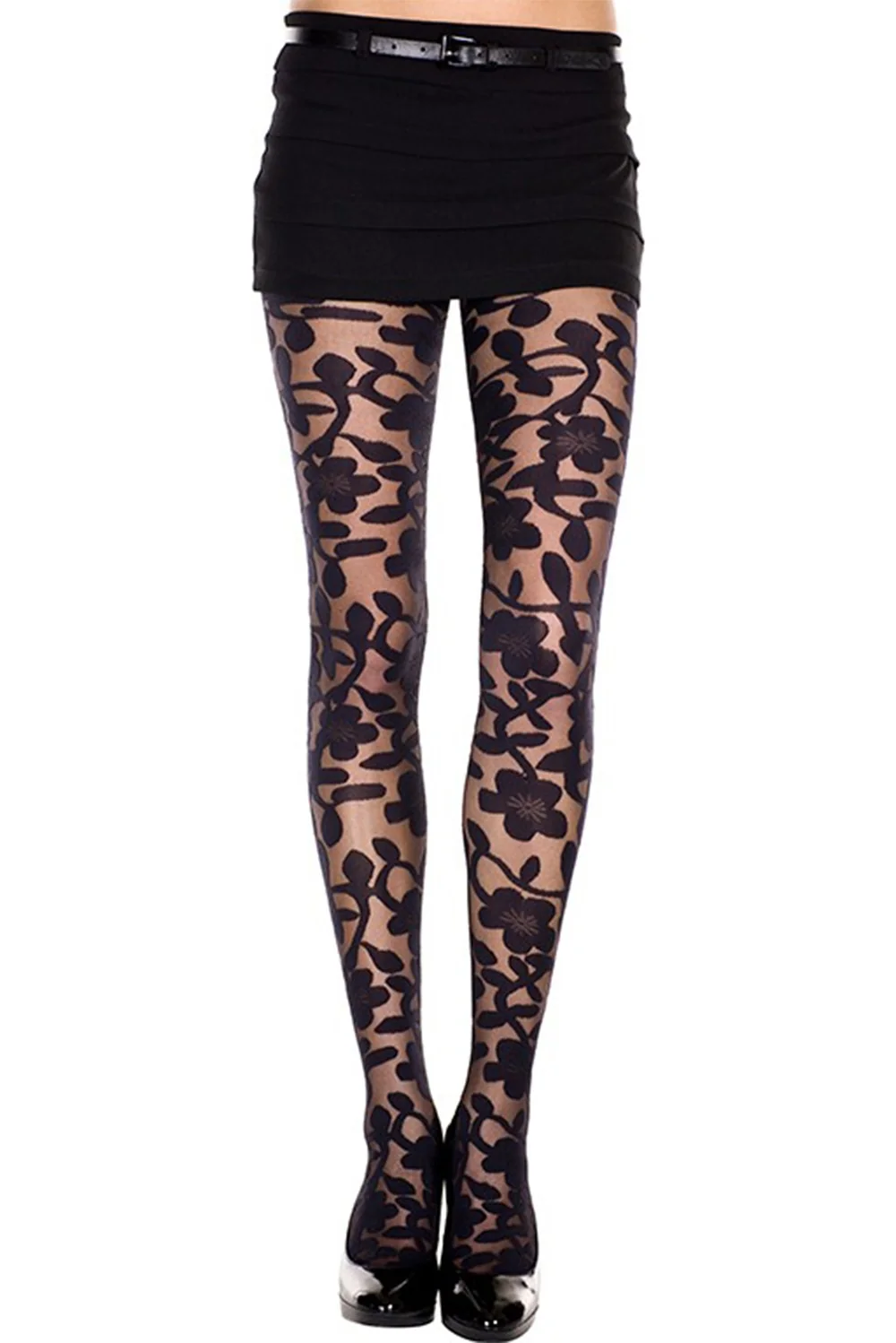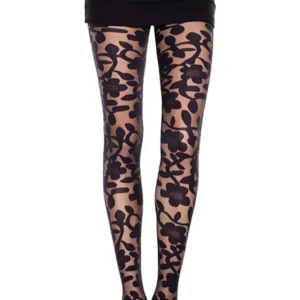 Schwarze Strumpfhose mit Blumenmuster – MH7344BLK