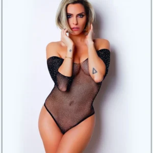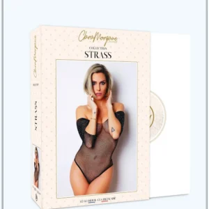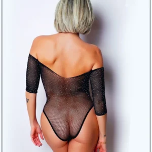Schwarzer Body mit 3/4-Ärmeln – Die Nummer 2 – Strass-Kollektion – CM98003