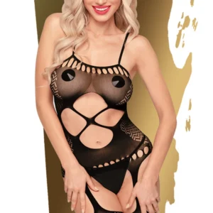 Entdecken Sie unsere Penthouse-Kollektion, die entworfen wurde, um Ihre Weiblichkeit zu feiern, mit diesem Netz-Bodystocking im Body-Stil mit Strumpfhaltern und schwarzen Strümpfen. Sinnlicher Netz-Overall im schwarzen Netzstil. Offen im Schritt. Wunderschönes Design, Mischung aus Transparenzen und Netz; Zusammensetzung: 88% Nylon / 12% Elasthan. Genießen Sie diese sexy und hochwertige Linie, die nur für Sie geschaffen wurde, und freuen Sie sich, ein Penthouse-Mädchen zu sein!