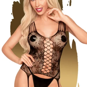 Entdecken Sie die Penthouse-Kollektion, die entworfen wurde, um Ihre Weiblichkeit zu feiern. Schwarzer Bodystocking „Love bud“ Einteiler in einem schwarzen Netzgewebe im Schritt offen Wunderschönes Design, Mischung aus sexy Transparenz und Spitze Dehnbares und bequemes Material Nippelabdeckungen nicht enthalten Zusammensetzung: 88% Nylon / 12% Elasthan