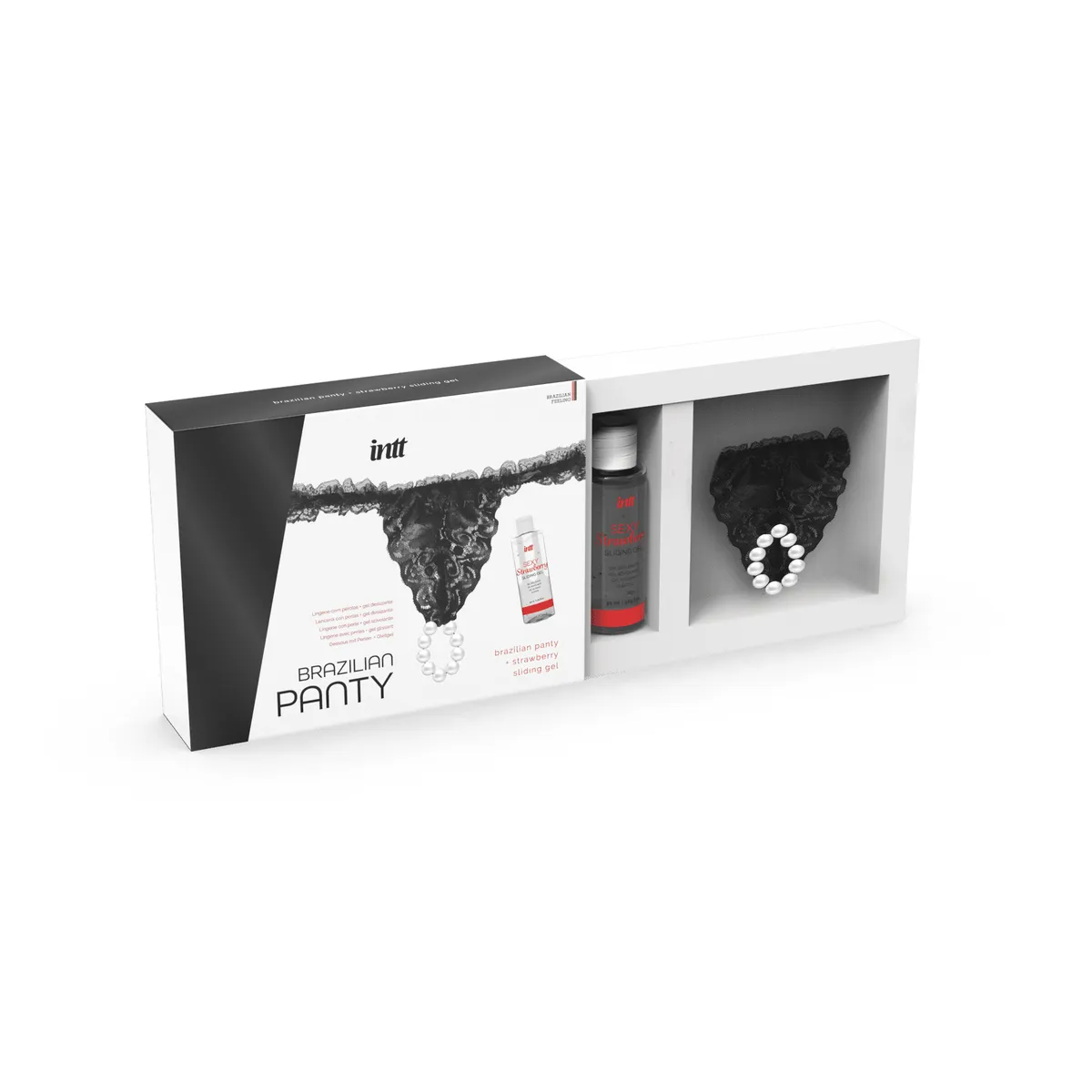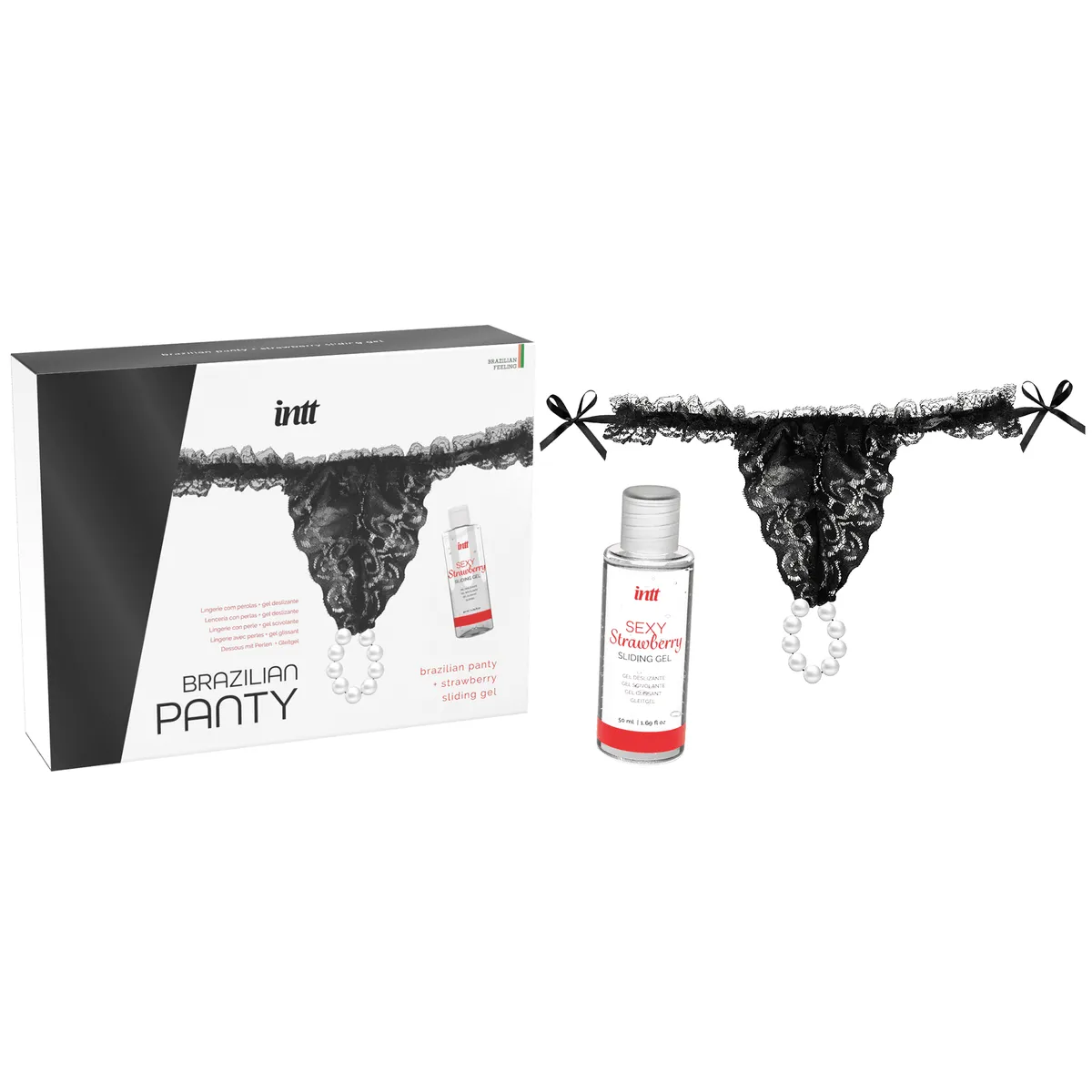 Eine feine Spitzenunterwäsche mit einem einzigartigen Perlenring, der Ihre intimen Momente würzen und stimulieren wird. Es wird mit einem wasserbasierten Gleitgel mit köstlichem Erdbeergeschmack geliefert.