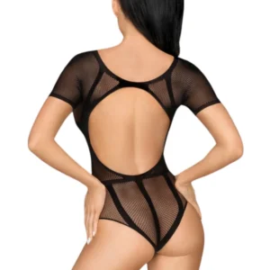Spaß! Dieser stilvolle schwarze Body mit transparentem Netz und sich kreuzenden undurchsichtigen Streifen. Dreiviertelärmel. Öffnung im Schritt. Body aus schwarzem Netz mit undurchsichtigen Streifen und transparentem Netz aus der Penthouse-Kollektion. Zusammensetzung: 92 % Nylon – 8 % Elasthan