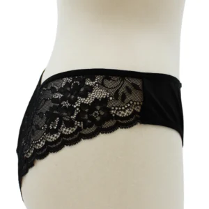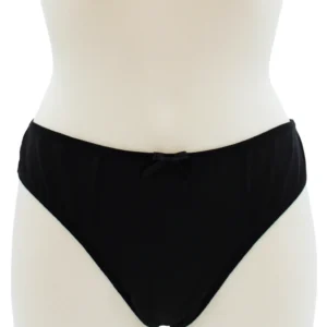 Diese elegante und bequeme schwarze Unterhose kombiniert ein blickdichtes Vorderteil mit einem zarten floralen Spitzenrücken, der die Kurven feminin betont. Eine kleine schwarze Satinschleife vorne verleiht eine romantische und elegante Note, während der leicht ausgeschnittene Schnitt perfekten Halt und optimalen Komfort im Alltag bietet.